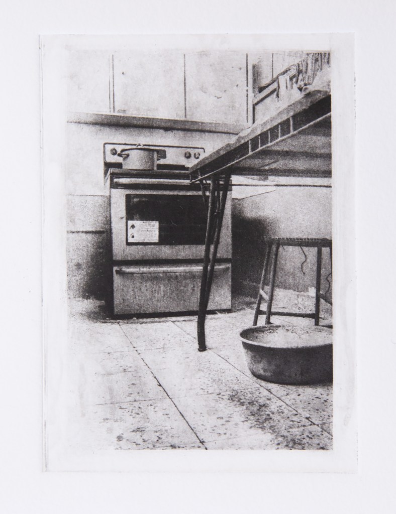 RemiJin Camping: Photogravures are different from other photographic processes in that with other processes the image is typically created directly onto a paper, metal, or cloth substrate. Photogravures have a few more intermediary steps before the final image is printed onto paper. The photogravures in this series are made from polymer plates, slightly different from the original copperplate photogravures and much safer for your health during the making process as the only liquids used are water and water-based inks. The plates I use are comprised of a steel backing and have an ultraviolet light sensitive coating of a polymer plastic for the surface. It is in this polymer coating surface where the image is etched by ultraviolet light, carving into the surface, and thus creating a textural recreation of the image. My original images were made with a digital camera and edited in photo editing software, then printed as positive black and white image onto a clear substrate. The image needs to be printed on the clear substrate because in order to etch the image into the plate it must be placed directly onto the polymer sensitive side of the plate, sandwiched tightly together in a contact frame, and then exposed to UV light using a box light unit with a specific UV wavelength. After exposure, the plate is washed in water to develop the image, making the plate etches deeper and ready for inking. Ink is gently rubbed into the plate, making sure to fill the etches with enough ink but not wiping away too much that the image won’t print. A delicate hand and lots of patience is necessary for this part. Once the plate is inked it is placed in an etching press with a damp paper on top of it. The pressure of pressing the plate and damp paper together transfers the ink sitting in the grooves of the plate into the paper itself, creating the final impression, the photograph.