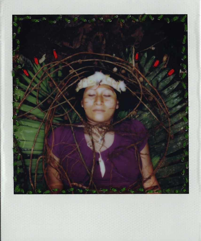 With embroidery, I attempt to reconstruct Sapara women’s narratives from the place of the observer and create images that highlight their belief that the physical and dream realms are intertwined. Another poignant part of my work is collaboration and co-creation, and that’s how the use of polaroid images are introduced as part of this project. During this collaboration Sapara women themselves embroider their own portrait. These works reflect on how colonization negatively impacted their Sapara cultural identity through the forced adoption of Western names.