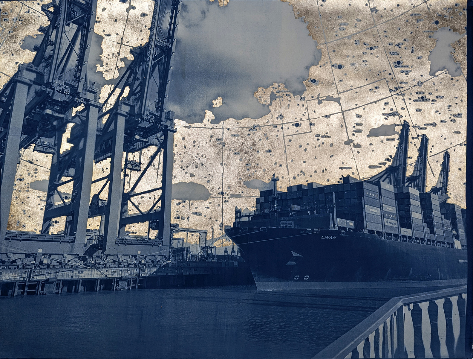 Elizabeth Ransom: Many of your artworks feature the use of gold and silver. Can you tell us about your process of incorporating alternative photographic process, such as cyanotype, with the use of precious metals?
